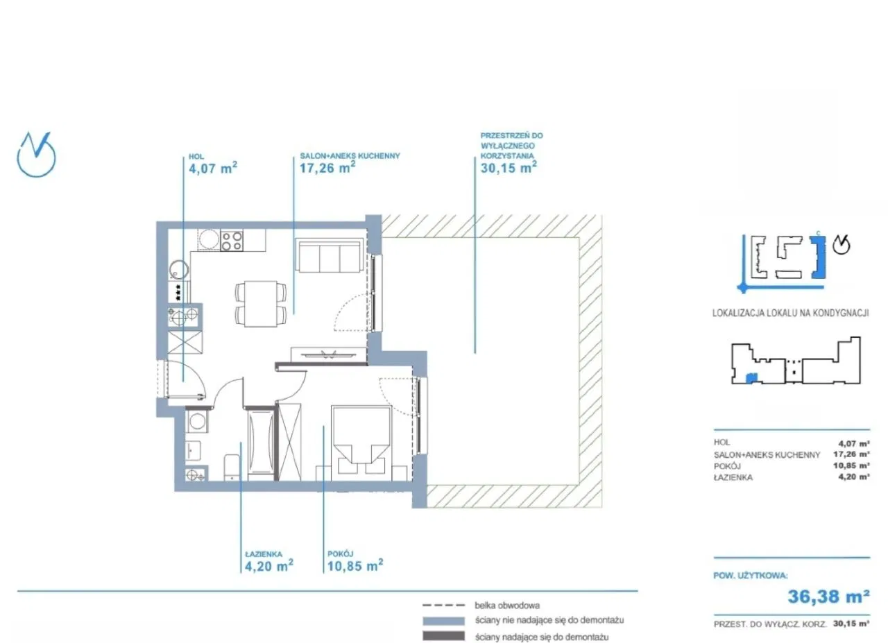 Każde mieszkanie posiada balkon, ogródek lub loggię, zapewniając komfort i przestronność.